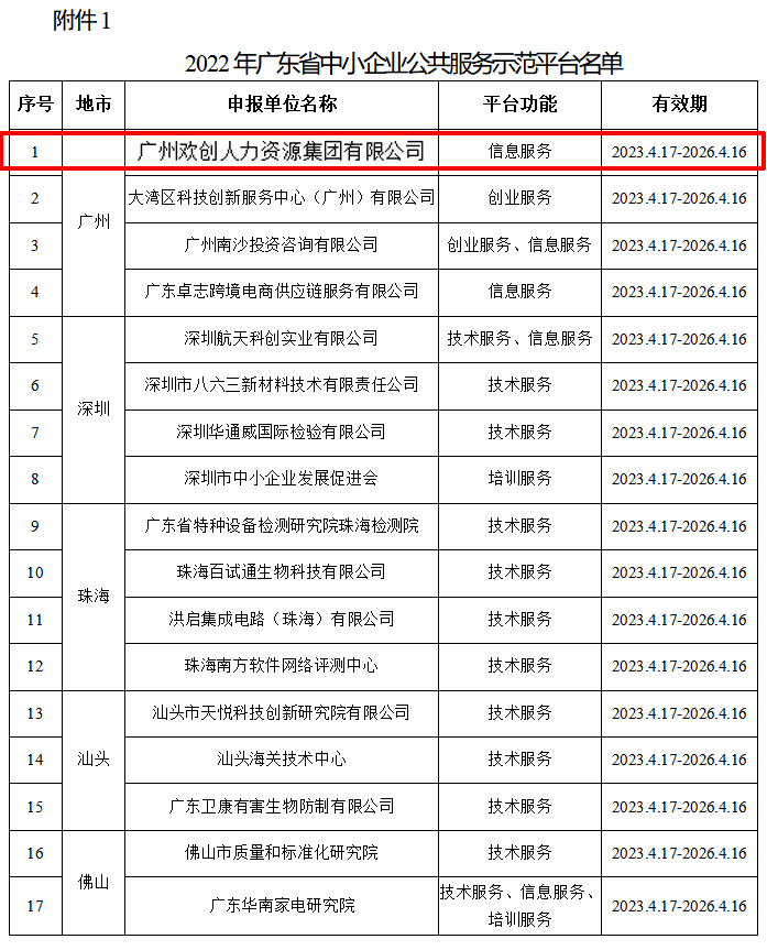 歡創(chuàng)集團被認定爲2022年廣東(dōng)省中小企業公共服務示範平台