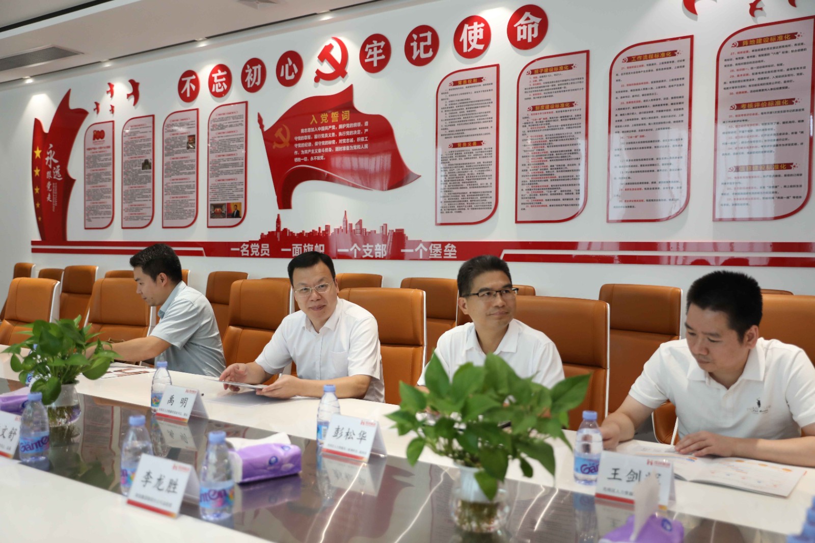 陳文舒、李龍勝等帶領來賓(bīn)參觀瞭(le)公司内部,介紹企業文化牆和歡創的發展曆程。