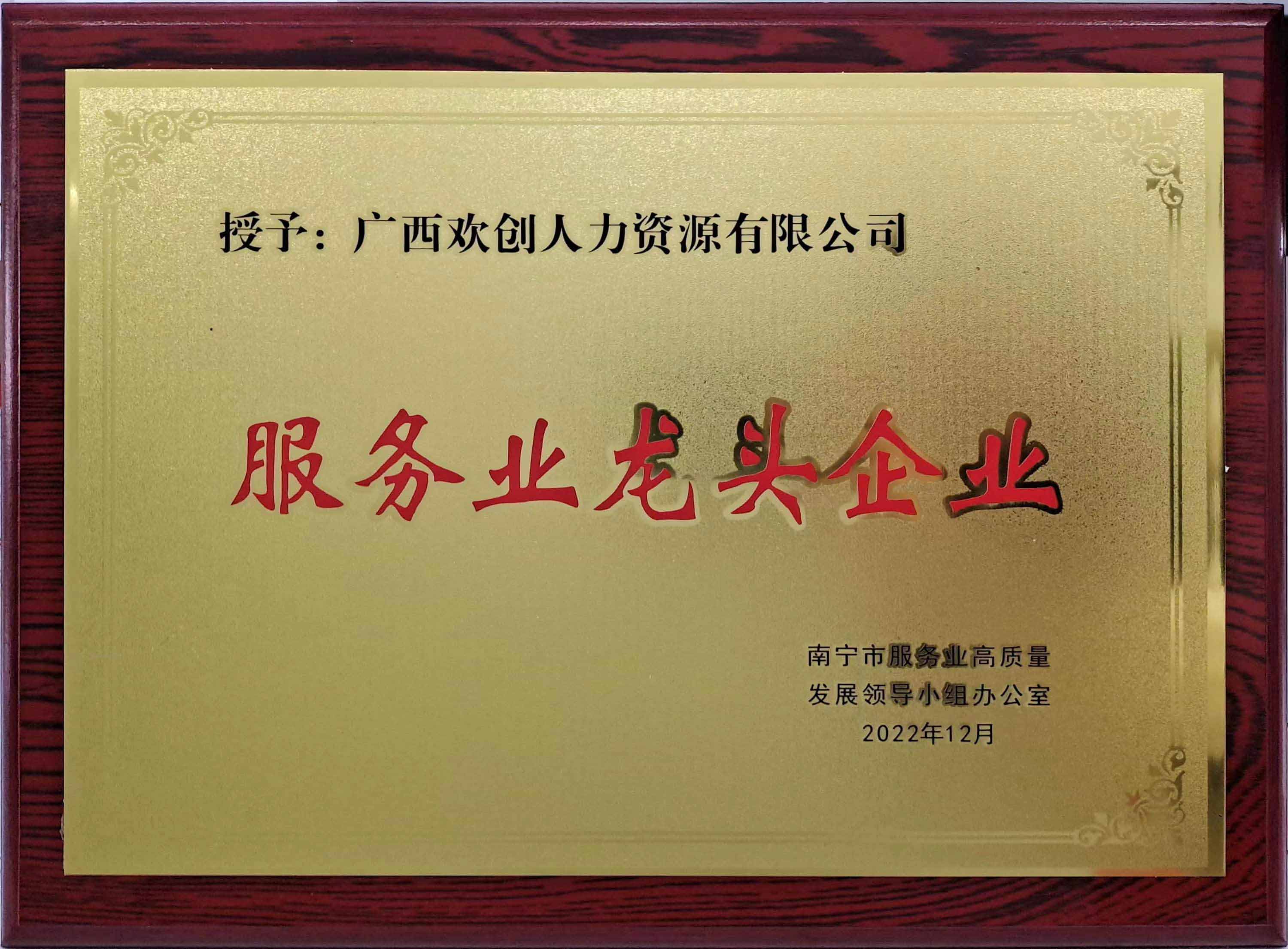 1、歡創(chuàng)廣(guǎng)西公司被認定爲“南甯市服務業龍頭企業”